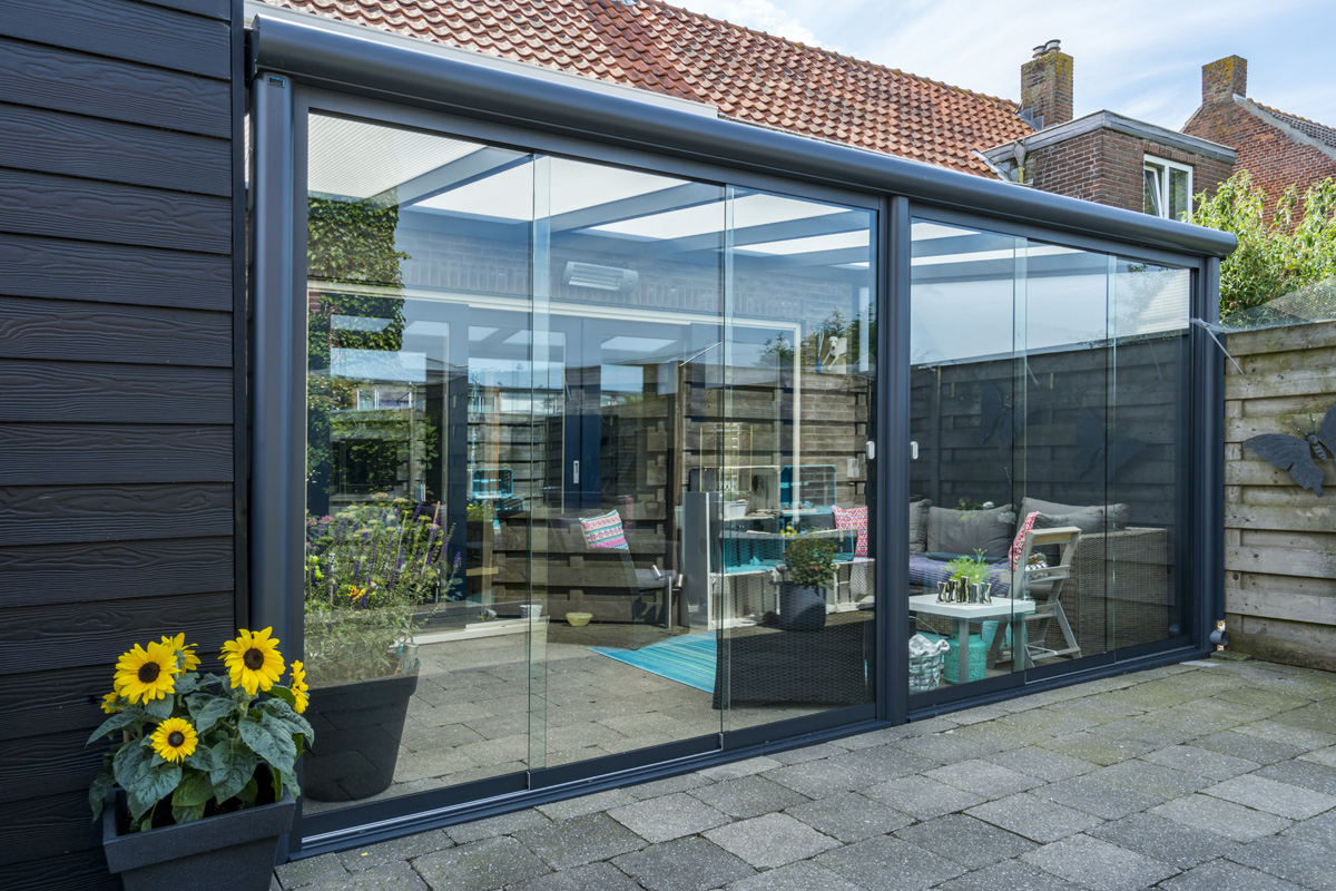 Because of our modular system, the possibilities with the Bosco are endless and suitable for every situation and every style. It’s available in the colours RAL9005, RAL9016, RAL7024 and RAL9001. For the polycarbonate roofing, you can choose from clear, ultra clear, opaque and solar control. Optionally, this veranda can be fitted with various accessories, such as a side gable, sidewall, glass sliding doors or LED lighting.